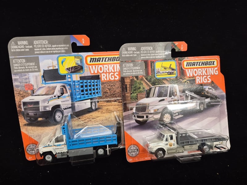 MATCHBOX WORKING RIGS COLLECTION - GMC 3500 ATTENUATOR TRUCK & INTERNATIONAL DURASTAR 4400 FLATBED Condition: Good - Refer To Images 587964+31
