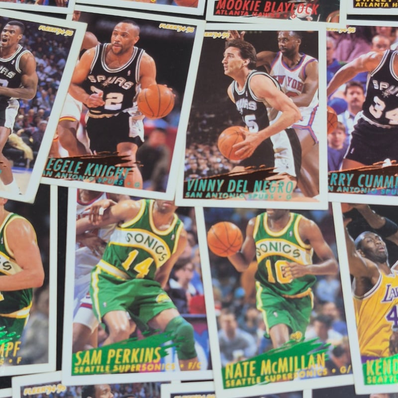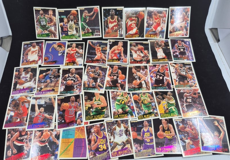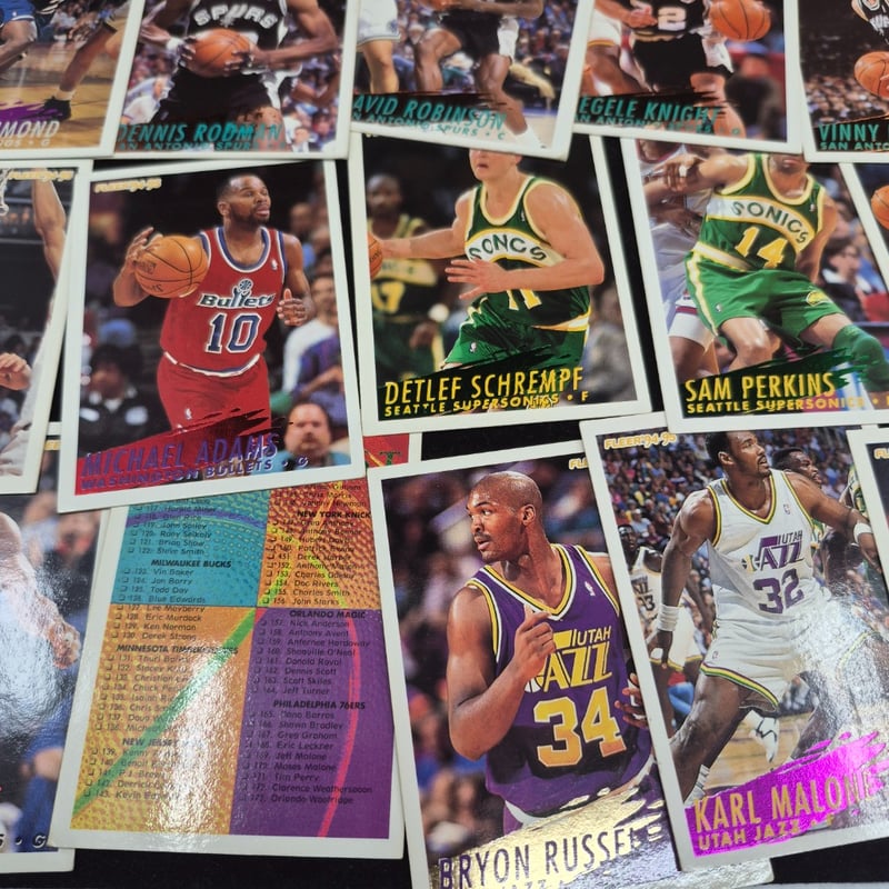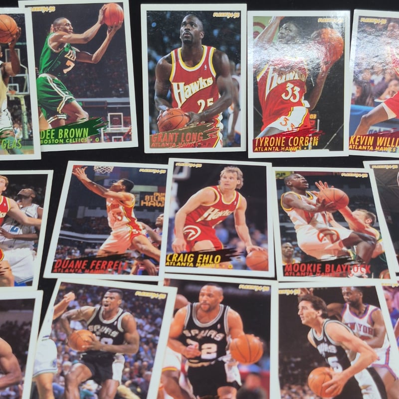 FLEER NBA TRADING CARDS COLLECTIONComprehensive Collection Of Fleer Nba Trading Cards Featuring Prominent Players From The Era Including Dennis Rodman, David Robinson, Detlef Schrempf, Sam Perkins, Kendall Gill, Karl Malone, Jay Humphries, Tom Chambers, Vinny Del Negro, Egele Knight, Michael Adams, Rex Chapman, Buck Williams, Rod Strickland, Willie Anderson, Antoine Carr, Stacey Augmon, Dale Ellis, Andrew Lang, Jon Koncak, Jim Keefe, Grant Long, Tyrone Corbin, Kevin Willis, Craig Ehlo, Duane Ferrell, Rookie Blaylock, Mookie BlayCondition: Good - Refer To Images587925+6