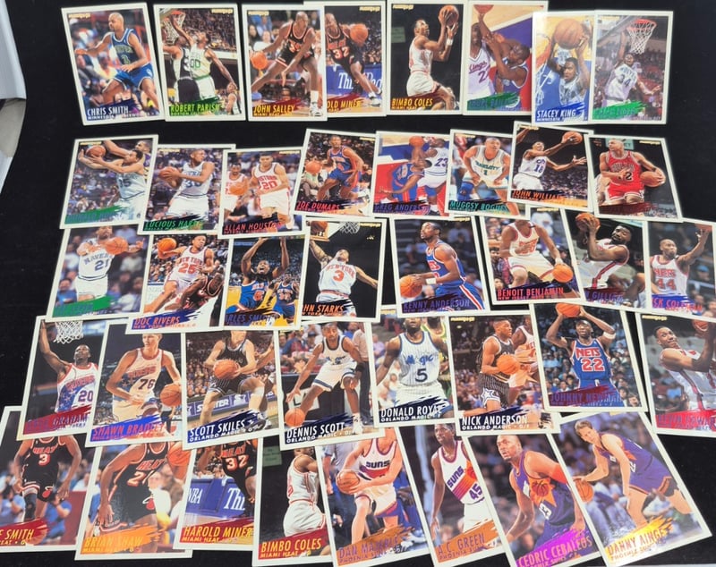 NBA TRADING CARDS COLLECTION - 1990S FLEER SERIESNba Trading Cards From The 1990S Fleer Series, Featuring Prominent Players Including John Salley, Robert Parish, Chris Smith, Bimbo Coles, Harold Miner, Stacey King, Delicious Harris, Allan Houston, Joe Dumars, Greg Anderson, Shawn Bradley, Scott Skiles, Dennis Scott And MoreCondition: Good - Refer To Images587925+12
